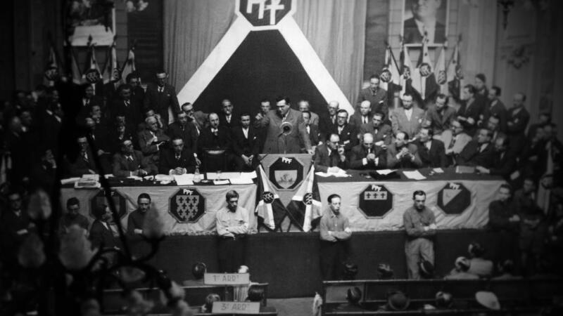 Photo: meeting du parti fasciste « Parti du Peuple Français », avec Jacques Doriot, ancien dirigeant du PCF.