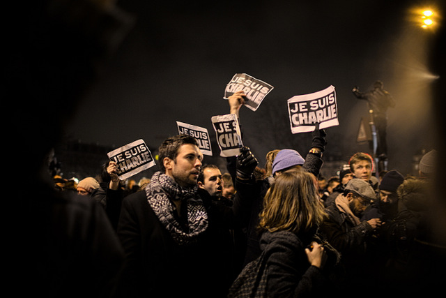 Le sept janvier deux mille quinze, ont été assassinés, par les tueurs d’Al Qaïda, Frédéric Boisseau, Franck Brinsolaro, Cabu, Elsa Cayat, Charb, Honoré, Bernard Maris, Ahmed Merabet, Mustapha Ourrad, Michel Renaud, Tignous, Wolinski. Le même jour, « Je suis Charlie » est né, a trouvé son nom, ses principaux slogans, et ses motifs centraux : l’affirmation de soi dans la réplique au djihadisme, le refus de l’amalgame, la liberté d’expression comme liberté de l’esprit.